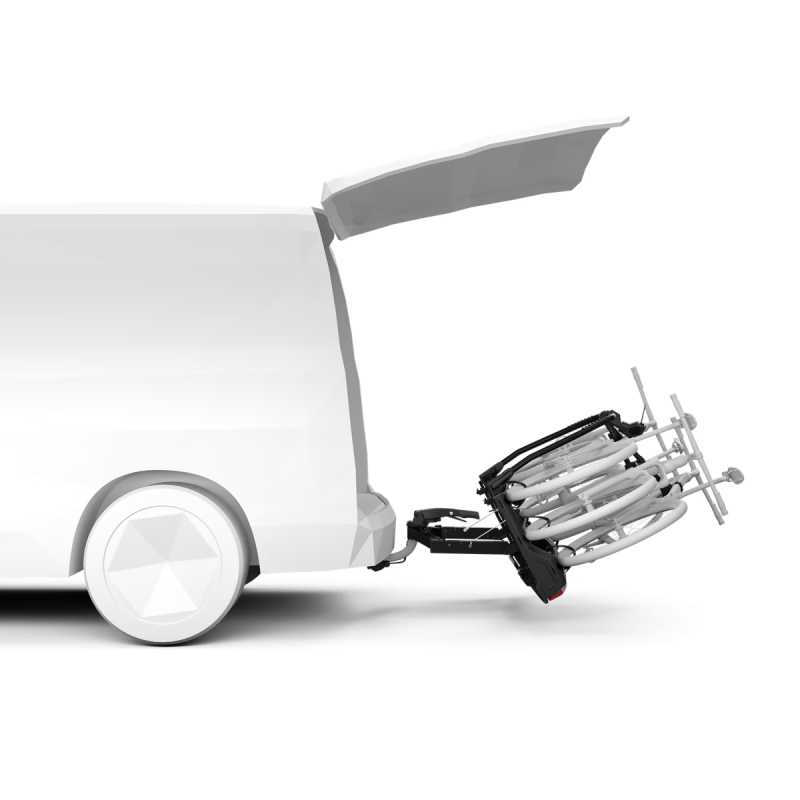 Thule VeloSpace 3 podporuje rázvor kolies až do 1350 mm a hmotnosť jednotlivých bicyklov až do 30 kg. Robustná platforma a premyslená konštrukcia udržiavajú bicykle stabilné na ceste. Verzia pre 3 bicykle ponúka inteligentnú funkciu naklápania, ktorá umožňuje jednoduchý prístup do batožinového priestoru. Uhol naklápania je možné meniť od 50 do 65° pre prístup do zadnej časti kompaktných dodávok.